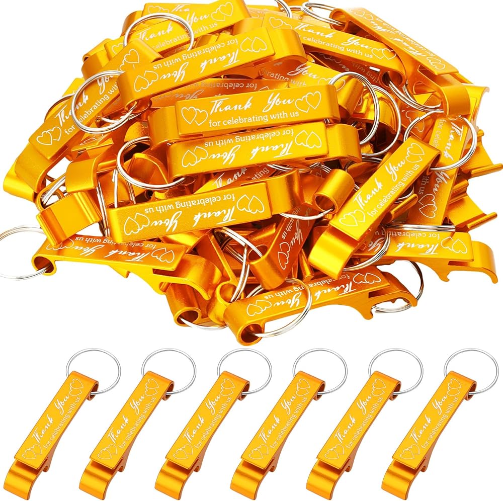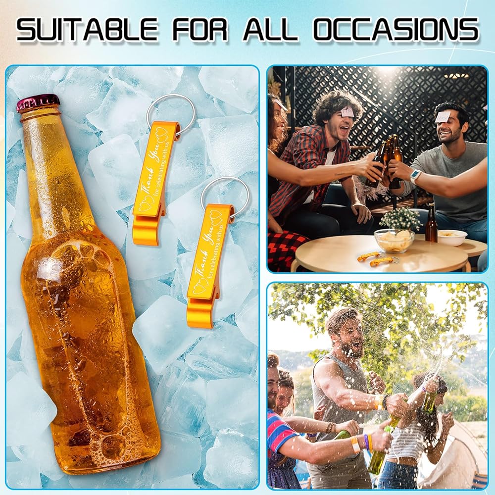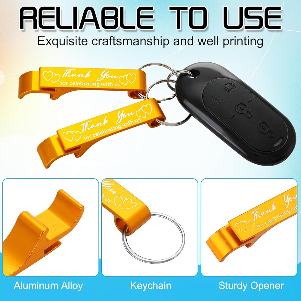 Multifunctional Design: different from ordinary bottle openers, our wedding favors for guests are designed with key rings, so that they can serve as both bottle openers and keychains; They can not only help you open beer bottles easily and quickly, but also to hang from keys, bags and more as decorations