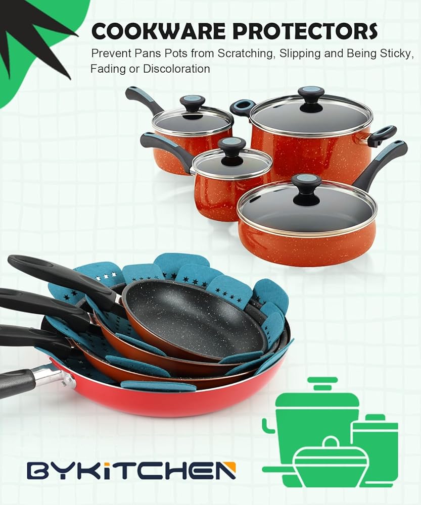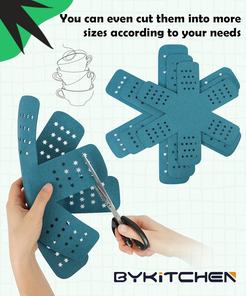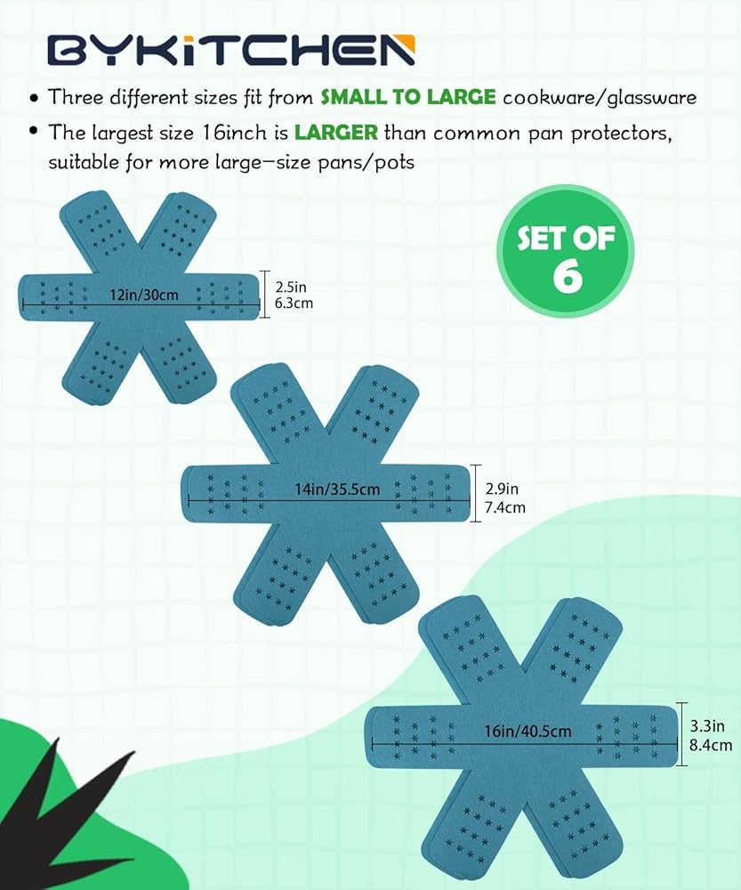 BYKITCHEN Pan Protectors for Stacking, Pan Pot Separators Pads with Stars, Felt Pot Divider Protectors for Stacking and Protecting Your Cookware(6pcs & 3 Sizes)