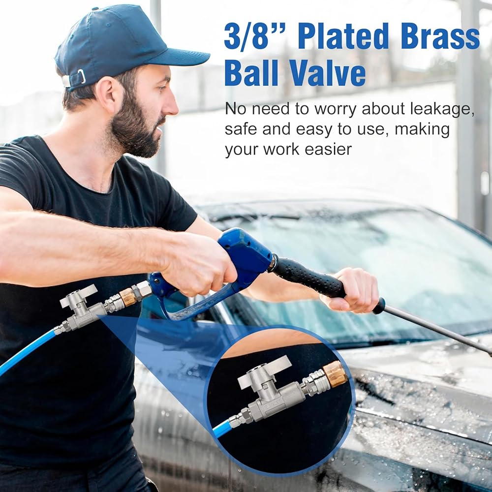 💧【Convenience and Safety】Ball valve for pressure washer gun is made of lightweight material, 3/8" Female BSP Inlet x 3/8" Female BSP Outlet with round frame. DN10 ball valve with unique design can withstand high Pressure. Ball valve can be used for pressure washer gun, foam cannons and power washer.