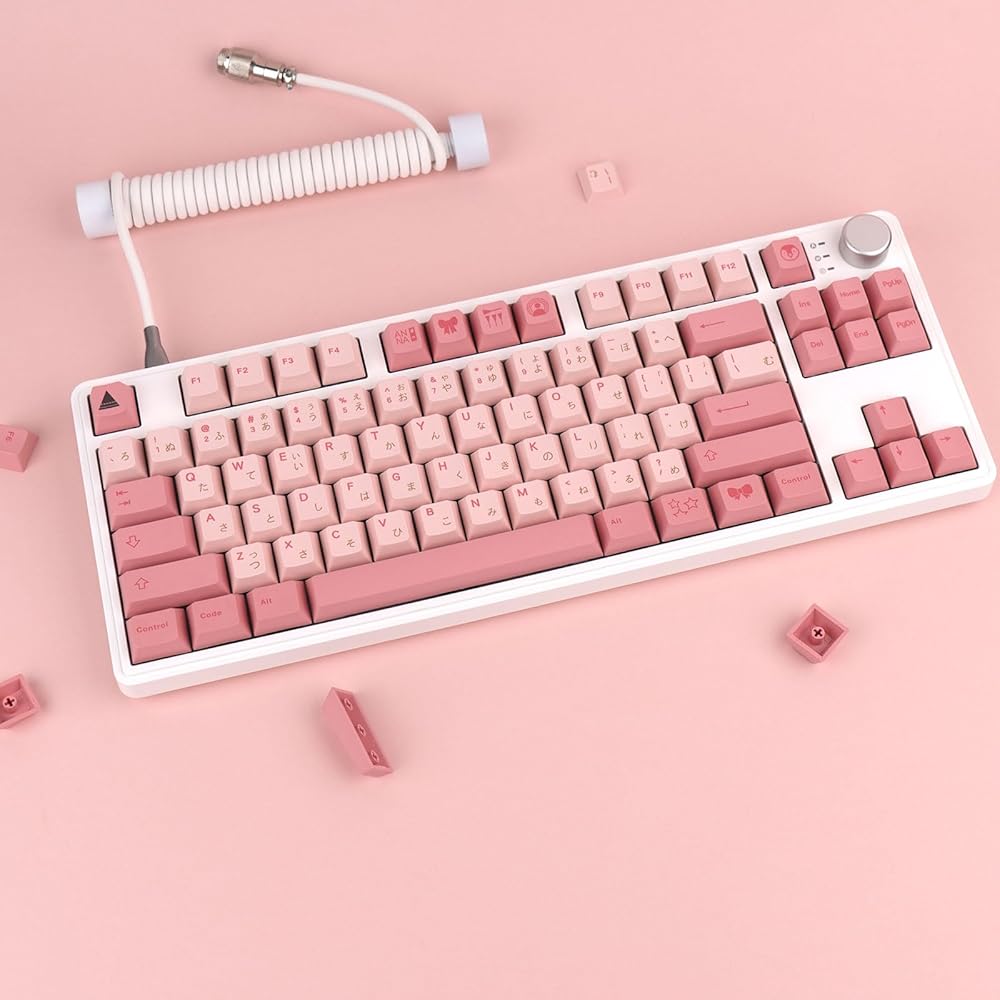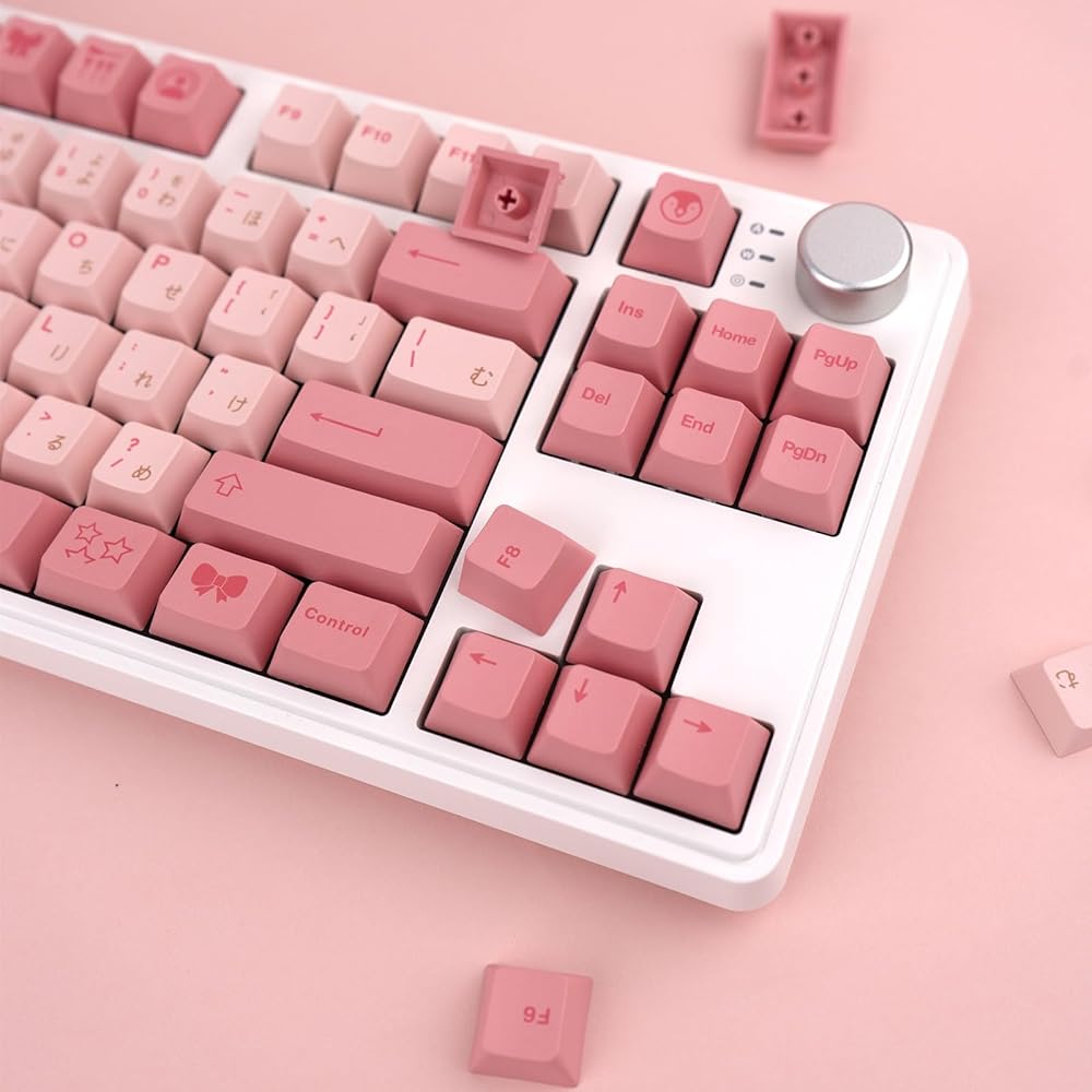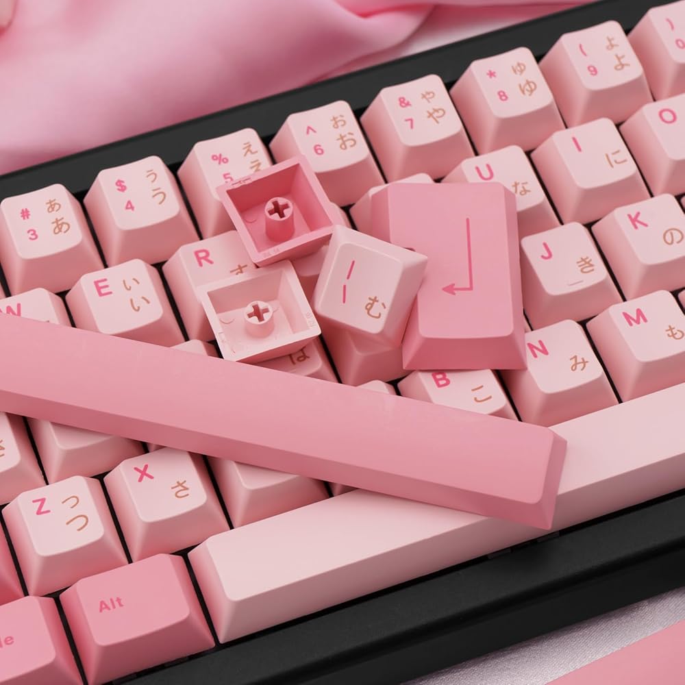 2.🖨️【PBT Keycaps】Japanese keycaps are made of PBT material, with a frosted texture that is fresh and dry, fine feel, high hardness, high temperature resistance, and no oiling for long-term use. In addition, the keycaps are made of heat sublimation process, which makes the keycaps almost not grinding the words, and still keep the bright color for a long time use.