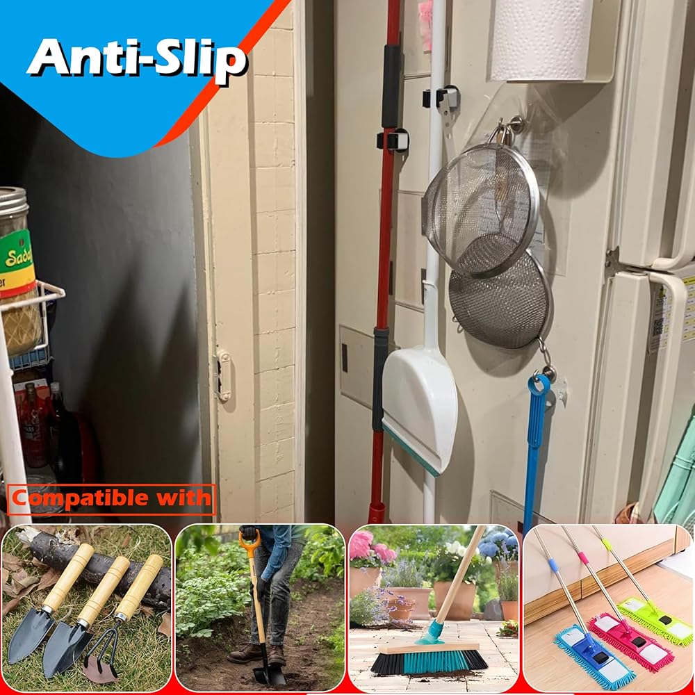[Movable Magnetic Tool Holder] Movable broom clip mop racks are much handier for hanging brooms, mops, racks, rags, brushes, gloves, baseball bats, and so on. Suitable for kitchen, bathroom, garage, laundry, broom closet, and washing storage