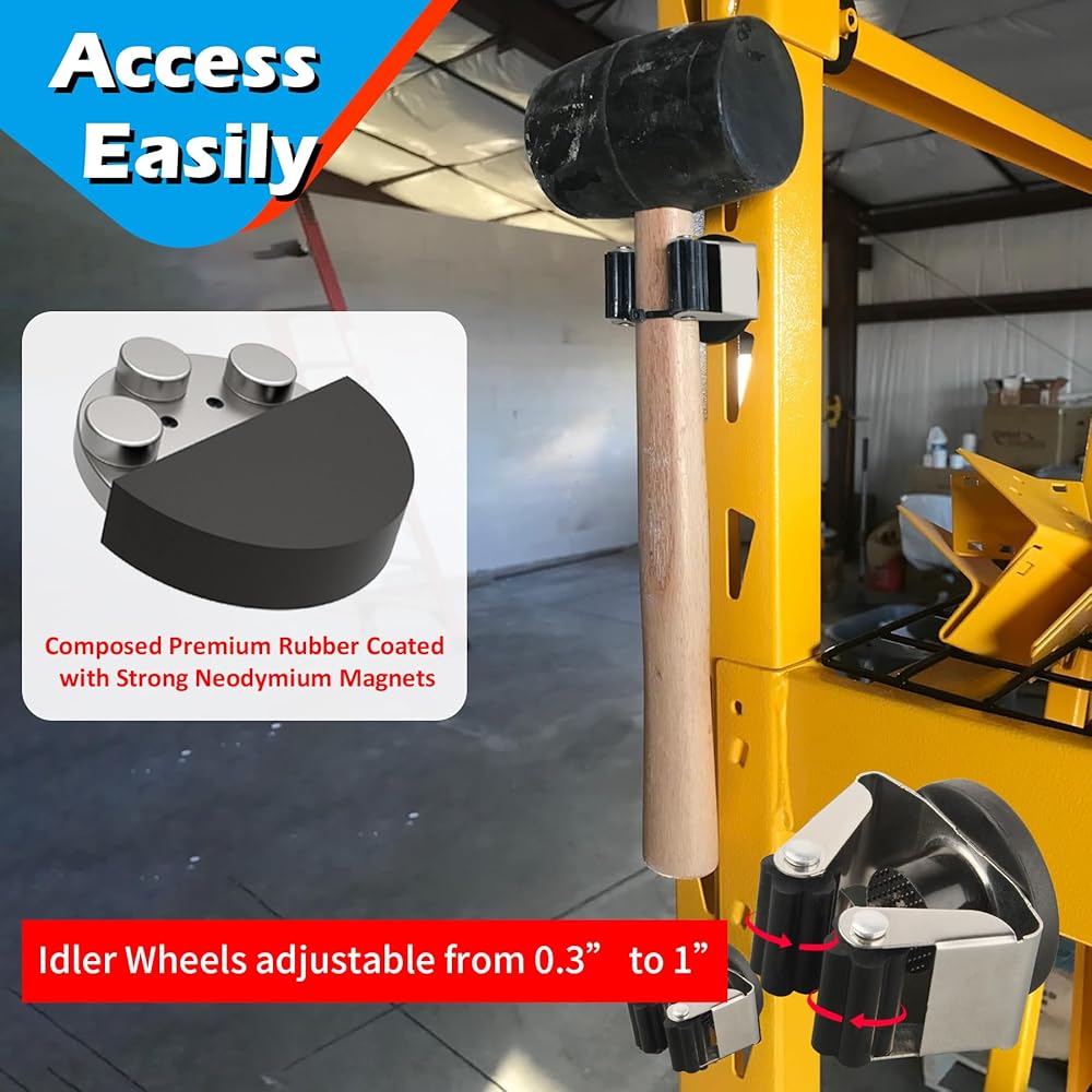 [Magnetic Mount Broom Holder] Without drilling holes, it can attach to any metallic surface to secure mops, brooms, flashlights, spray cans, markers, and other garage tools in place, and easily move around when using, much handy for daily life