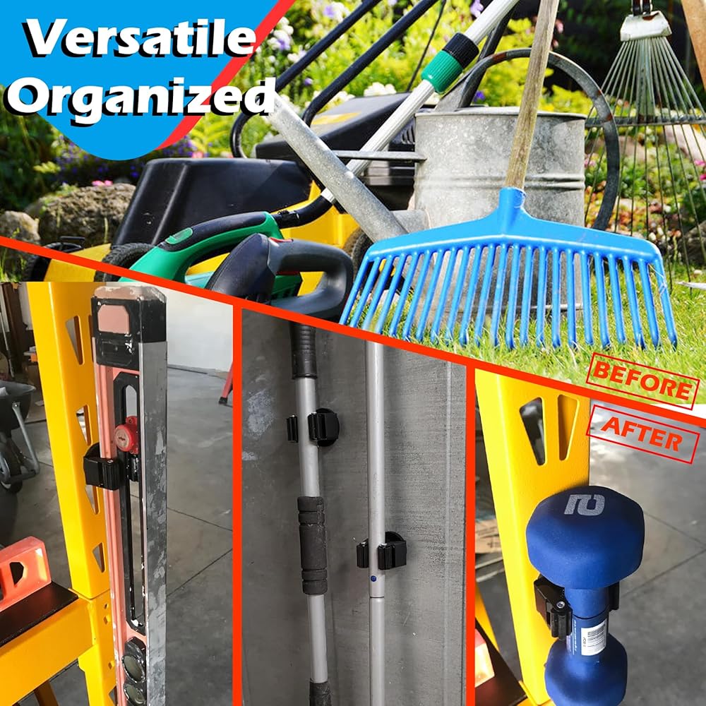 [Easily Mount Tool Racks] Benefiting from a triangle buckle, the magnetic broom holder can adjust size automatically based on the different thicknesses of the handles to keep your tools in place and guard them against falling off