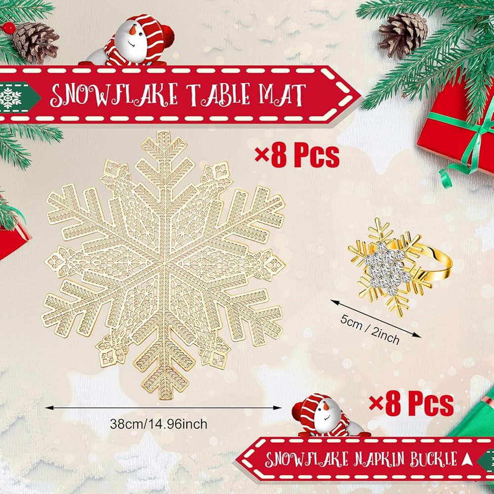The Christmas table place mats and Christmas napkin rings are designed with classic snowflake shape in silver, which will add a strong Christmas atmosphere to your dining room, bringing you distinctive feelings.