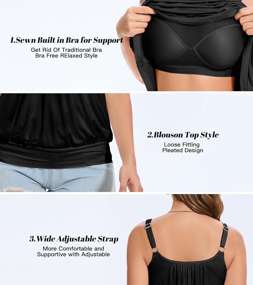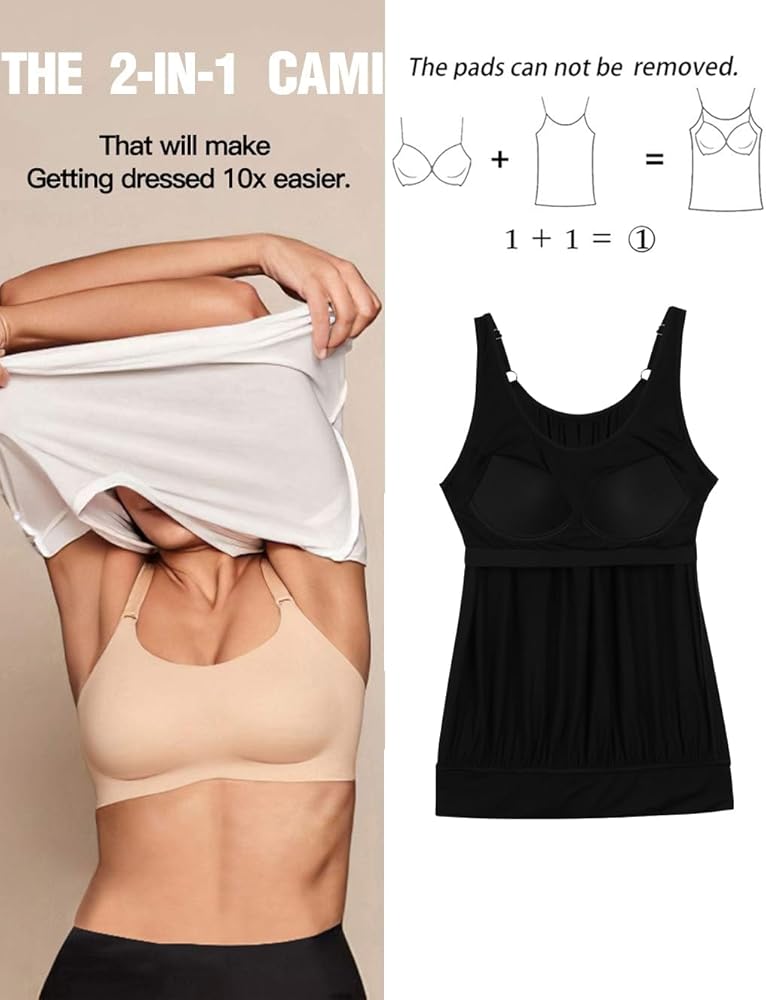 Built in Sewn in Bra:not removable built in bra design,medium support for daily wearing and sports.The ANYFITTING built in bra is specially designed for US market.full coverage and medium support.Say bye to traditional bra any more.Enjoy comfortable bra relax and cool wearing experience in everyday.