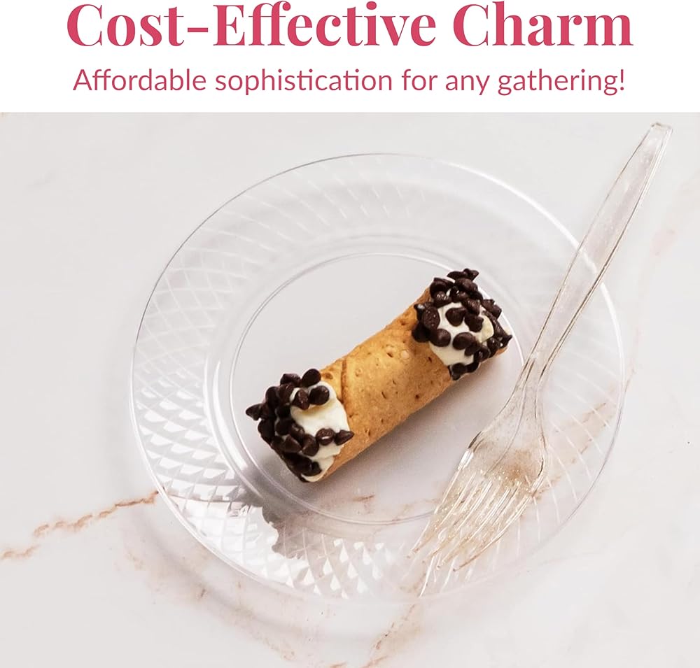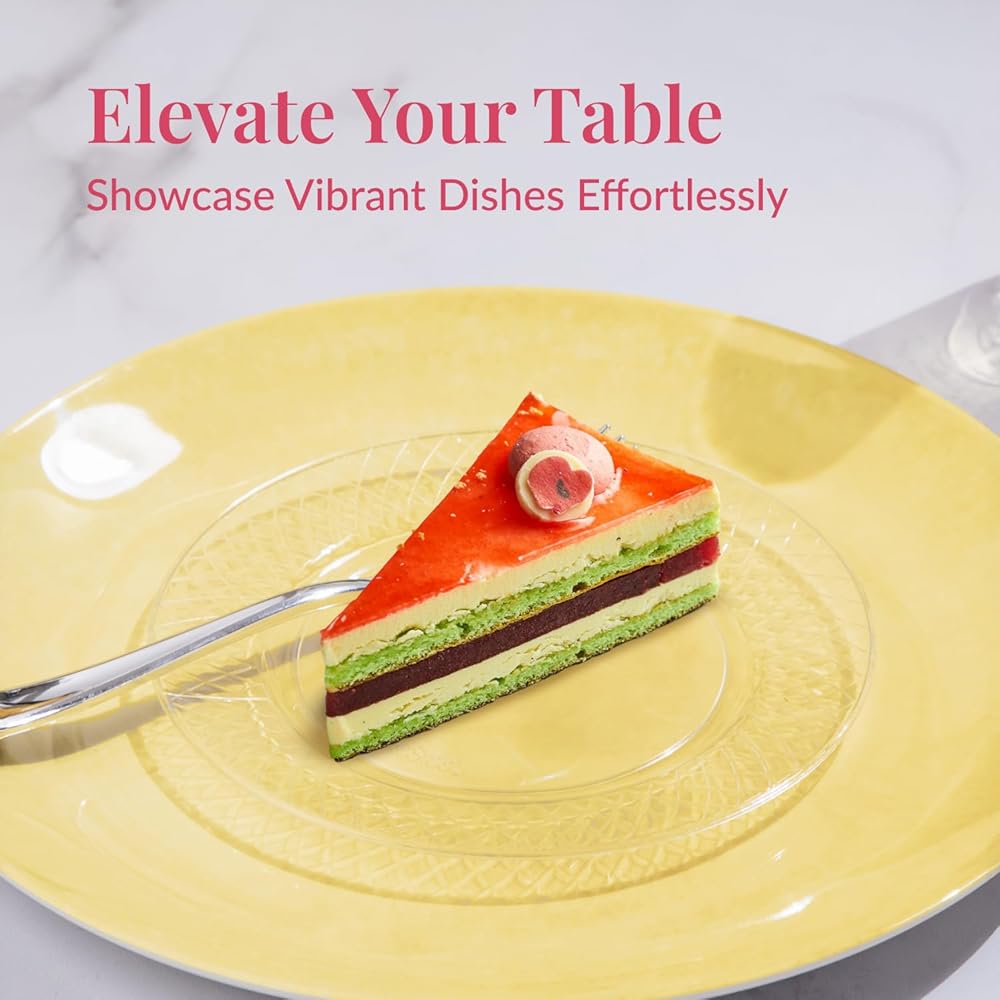 Cost-Effective Option: These clear plastic plates are elite-quality; suitable for instantly elevating weddings, banquets, or any catered occasion with sophisticated disposable cake plates