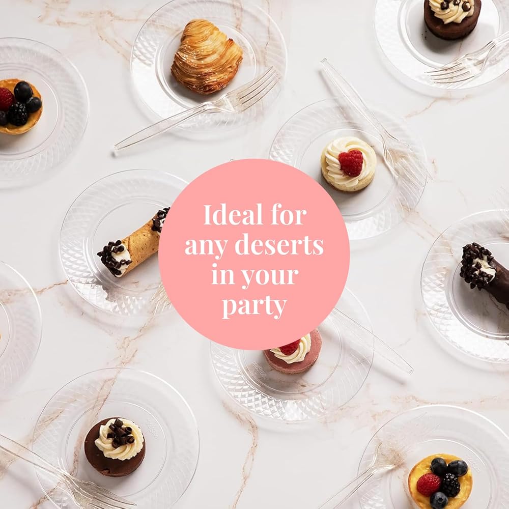 Suitable for Every Occasion: Whether for a wedding, holiday, or casual event, these clear plastic plates and cake plates are ideal for serving desserts, appetizers, and small portions to guests