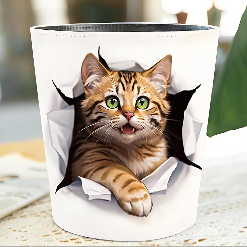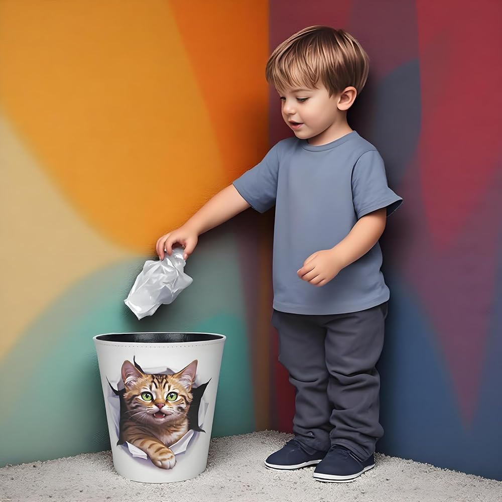 2 Pack 2.6 Gallon 3D Cat Cute Trash Can for Bedroom Dorm Bathroom Kids Boys Girls Room Nursery Home Office Small Waste Basket Garbage Cans Trash Bin Dustbin