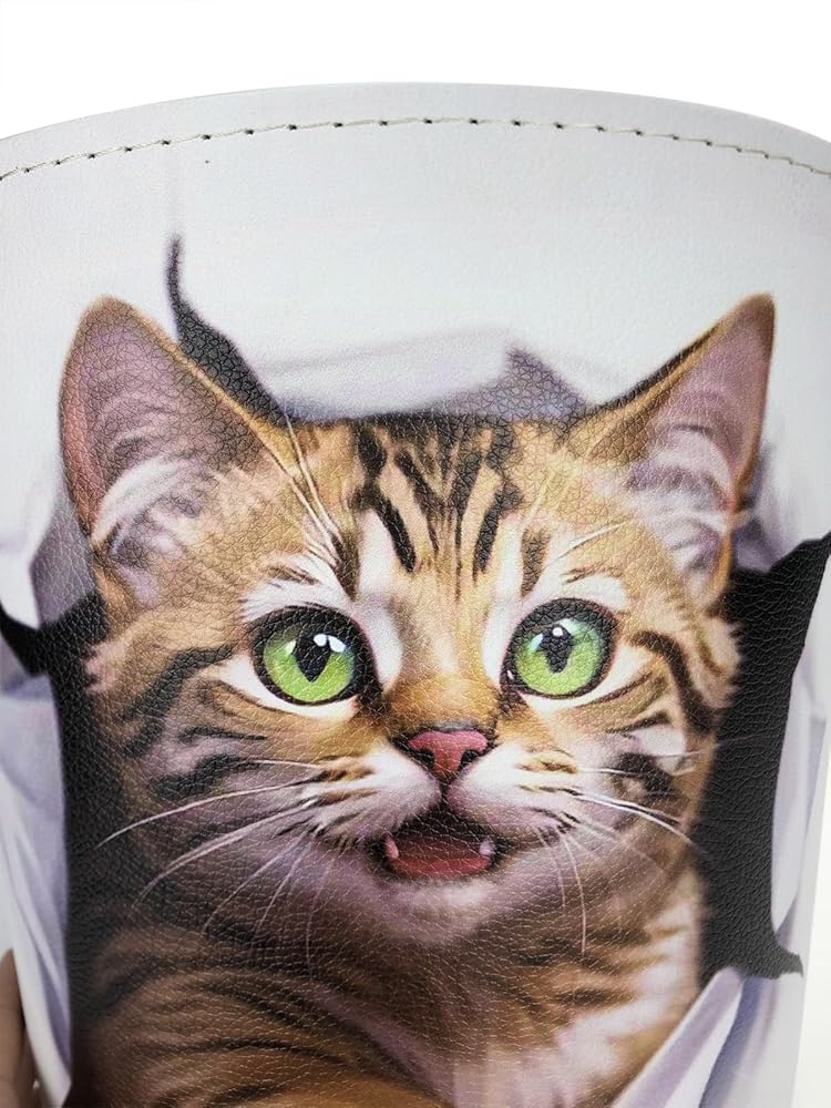 Unique Design: This Round Trash Can Features A Printed Leather Exterior, Giving It A Very Stylish And Upscale Appearance. The Printed Patterns Are Colorfast And Won't Fade.