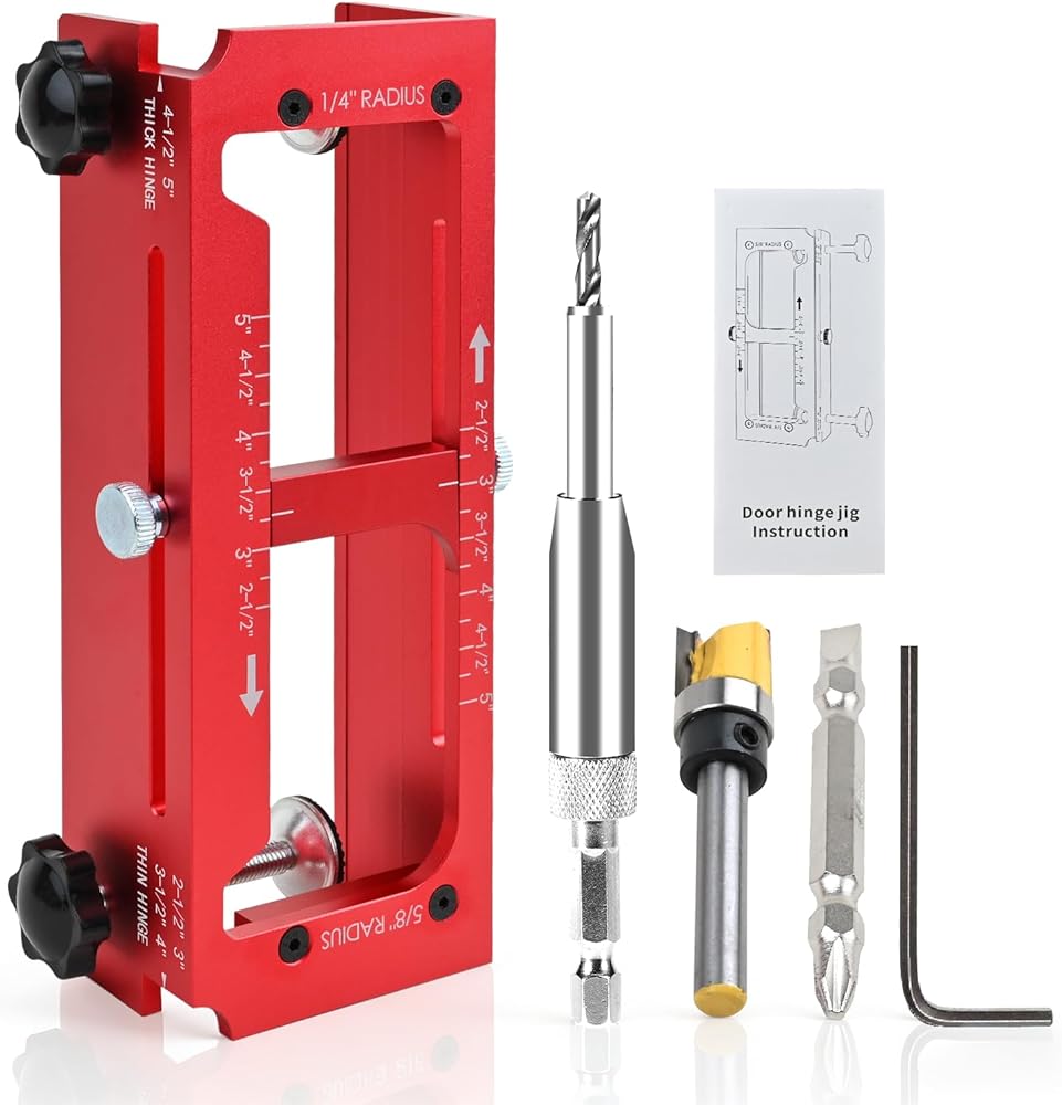 Improved Ease of Use: With the door hinge router template, you can easily easily adjustable for hinge length, thickness, and corner type (round vs. square). Equipped with a built-in depth gauge for precise depth setting and a self-centering hinge bit for perfectly aligned hinge screws without the need for multiple tool. Our door hinge mortiser is the corner pieces are designed to work seamlessly with different radius hinges. Please note: suitable for doors, not jambs