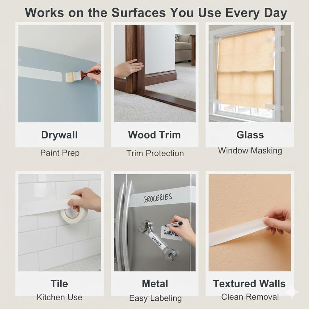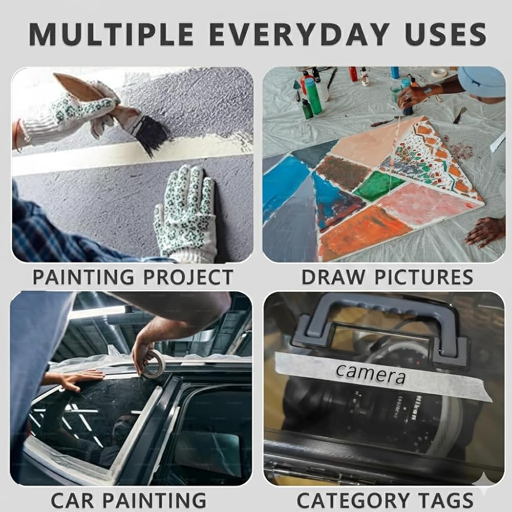 【Premium Masking Tape for Multiple Applications】 SWR masking tape is made from high-quality beige crepe paper with a durable rubber adhesive. It delivers excellent stickiness and ease of use, making it suitable for painting, crafting, labeling, and other DIY projects. 【Strong Adhesion and Easy Removal】 Our masking tape provides reliable adhesion to various surfaces, including walls, glass, metal, and plastic, while allowing for clean removal without leaving residue or damaging the surface. 【High Versatility and Durability】 This beige masking tape is designed for both indoor and outdoor use. Whether you're creating sharp paint lines, organizing household items, or working on creative art projects, SWR masking tape ensures precision and durability. 【Product Specifications】 Size: 1 Inch x 55 Yards Pack Quantity: 24 rolls Color: Beige. Material: Crepe paper with rubber adhesive. 【Why Choose SWRT Masking Tape?】 SWR is dedicated to providing high-quality, affordable adhesive products. With our masking tape, you get superior performance, versatility, and reliability for all your needs.