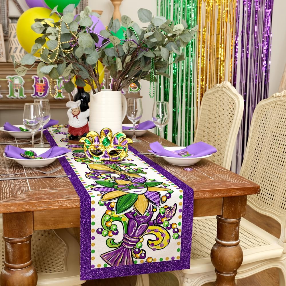 • Generous Size for Versatile Decor: This table runner ,measured 13 x 72 inches, allowing you to effortlessly adorn your dining table or create a stunning centerpiece for your Mardi gras
