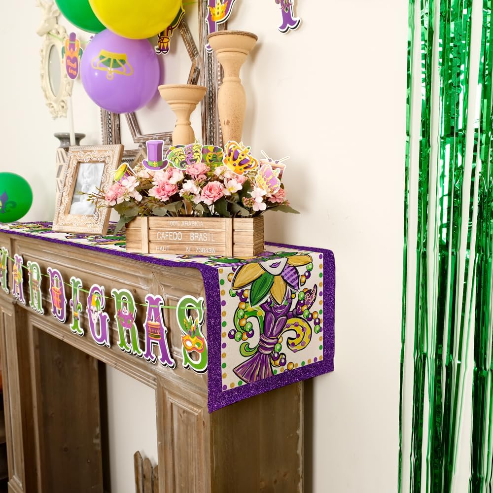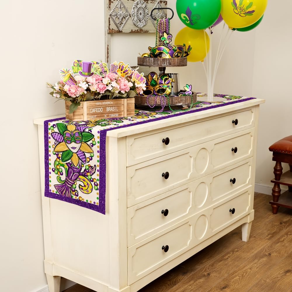 • Versatile Styling Options: Our Mardi Gras rable runner is not only perfect for dining tables and parties, but they can also be used for various creative purposes. Add a festive touch to your home decor by using them as eye-catching table centerpieces.