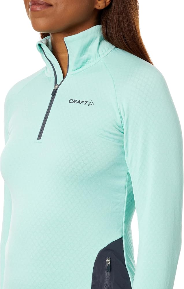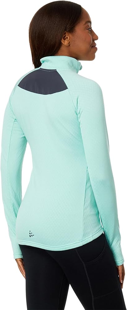 Throw on a bit of heat before you set out in the Craft Sports Core Trim Thermal Midlayer. A seamless training midlayer top crafted from stretch polyester with jacquard-knit panels and a zip-adjustable stand collar. Thermal knit upper with a warm brushed interior adds warmth to training, running, skiing, and everyday wear. Stretch design allows a wide range of natural movement. Stand collar with quarter-length zippered chest for fast ventilation. Long raglan sleeves with thumbhole cuffs. Zippered security pocket at the left side. Ribbed-knit drop back hemline. 93% polyester, 7% spandex. Machine washable.