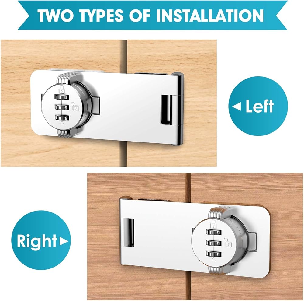 Easy to install: this cabinet lock can be installed in both left and right directions, can be adjusted according to your actual needs, very convenient, the installation angle is 180 degrees, the product comes with a detailed installation guide and auxiliary card