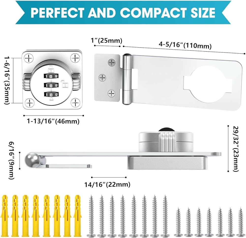 4.5 in Mechanical Combination Swing Hasp Lock, Combination Cabinet Lock, Small Door Security Latch for Cabinets, Drawers, Closets, Storage Cabinets and Barn Doors (Silver-1pc)