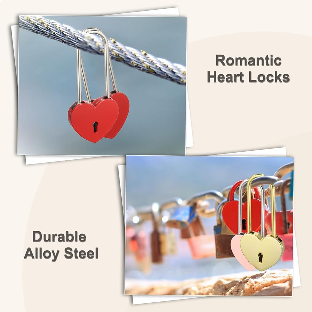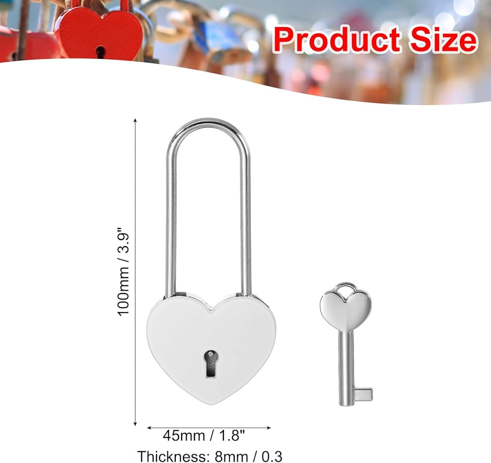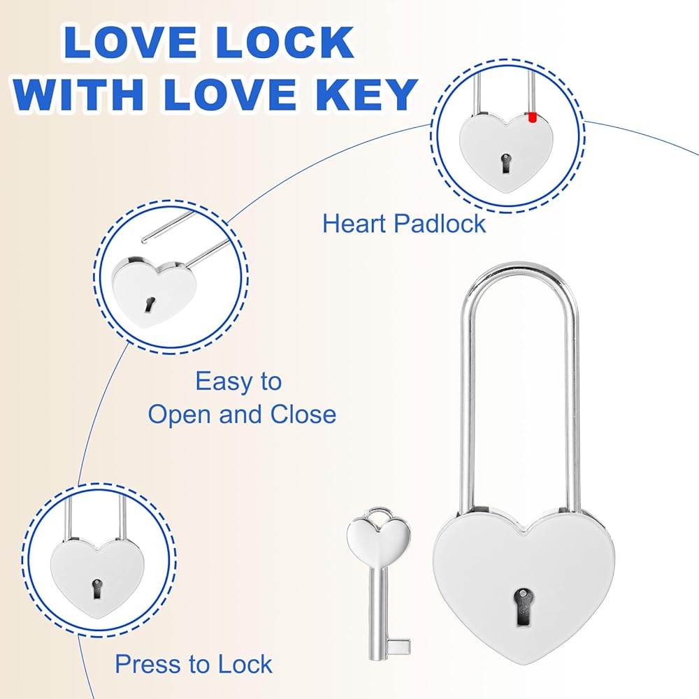 Love lock heart-shaped padlock with a key is a symbol of love, usually used to celebrate weddings, anniversaries, or engagement ceremonies, padlocks are locked on bridges, fences, wishing trees, bridges, or gate to express eternal love. It can also be used on locks, jewelry boxes, handbags, storage boxes, diaries, small luggage, etc.