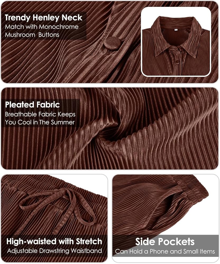 Pleated Fabric: This women's plus size 2 piece outfit is crafted from high-quality polyester fiber, offering a soft, breathable, and lightweight fabric that is gentle on the skin. The material is stretchy and comfortable, ensuring maximum comfort throughout the day. The pleated design adds a touch of modern style, enhancing the luxurious feel and making it both stylish and cozy to wear. The fashionable pleated fabric further elevates the chic aesthetic of the set.