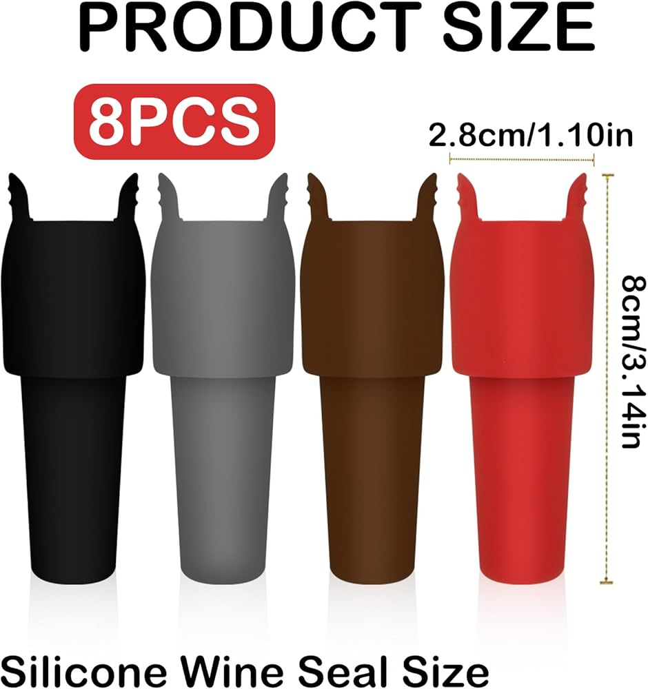 ----Our wine stopper, a set of 8 wine bottle stoppers with handles in 4 colors, is made of silicone material. It is small and lightweight, which is convenient for you to store.
