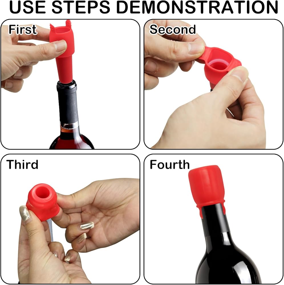 ----The silicone wine seal stopper has small handles on both ends of the top, which makes it easy for you to put the upper part of the wine stopper down to cover the bottle mouth and easily perform secondary sealing.
