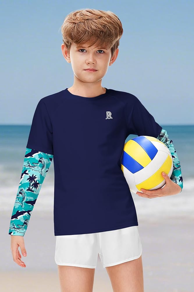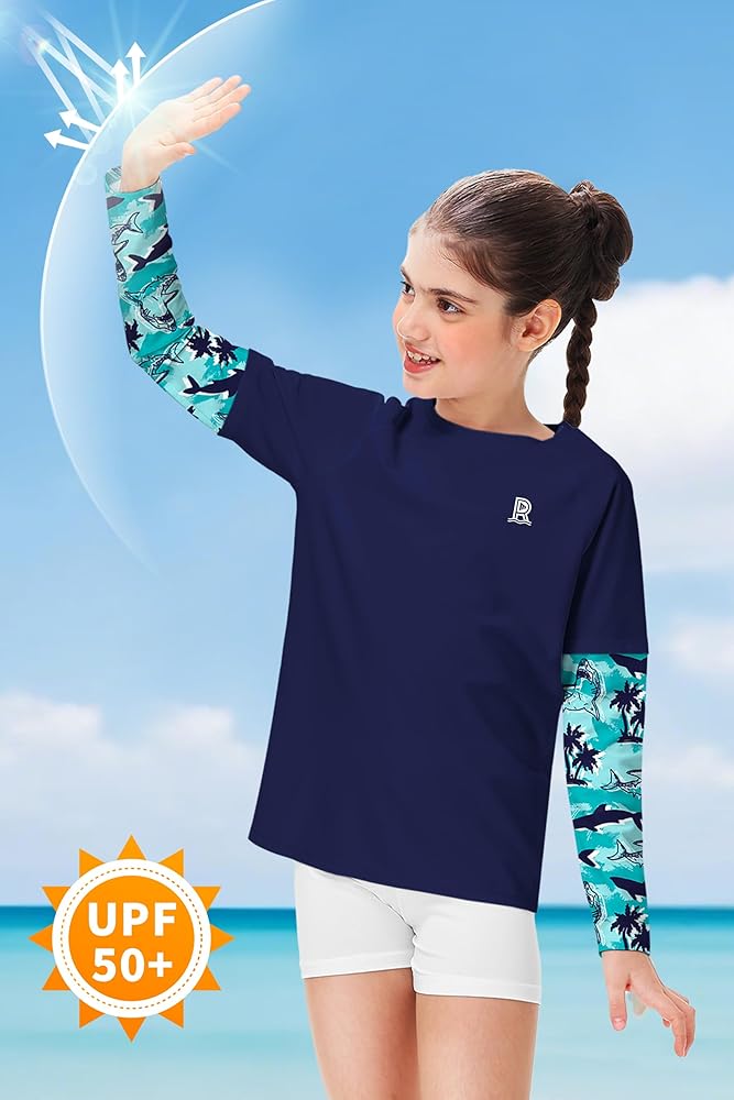 Remimi Unisex Kids Long Sleeve Rash Guard Upf 50+ Swim Shirts