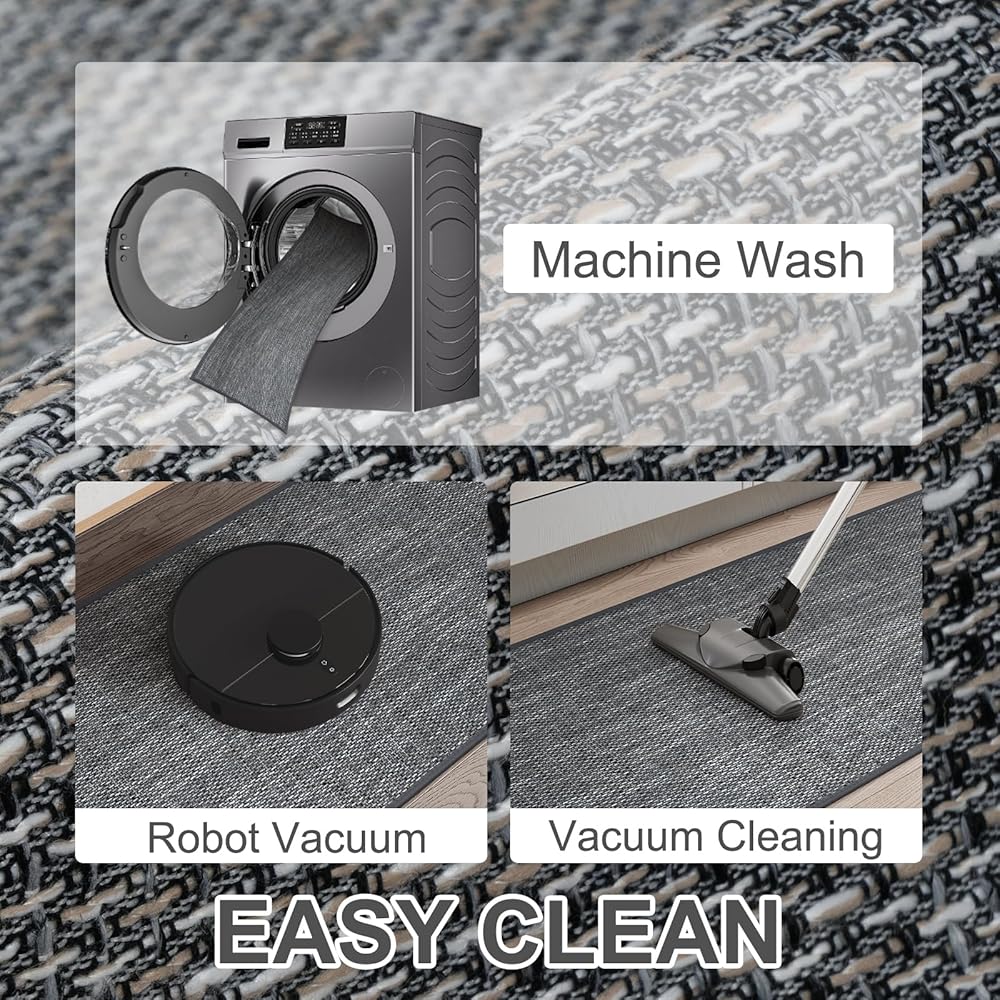 Washable: LEEVAN Kitchen Floor Mat is a soft and shrink-resistant natural material that you can machine wash. We recommend washing on a cold, gentle cycle with a mild detergent and air drying to p shrinking. At the same time, regular vacuuming will help keep your washable rug looking new for longer and prevent dirt that is on the surface of the rug from getting embedded. Or just shake the rug to get the debris off or sweep it up