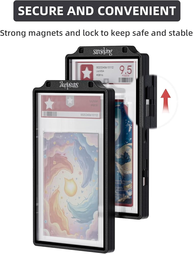 CONVENIENCE: Designed to fit glass display slab Case perfectly, keeping them secure without wobbling or risk of impact. The strong magnets allow for smooth, quiet opening and closing, while the built-in safety lock adds extra protection, ensuring graded cards stay safe and damage-free