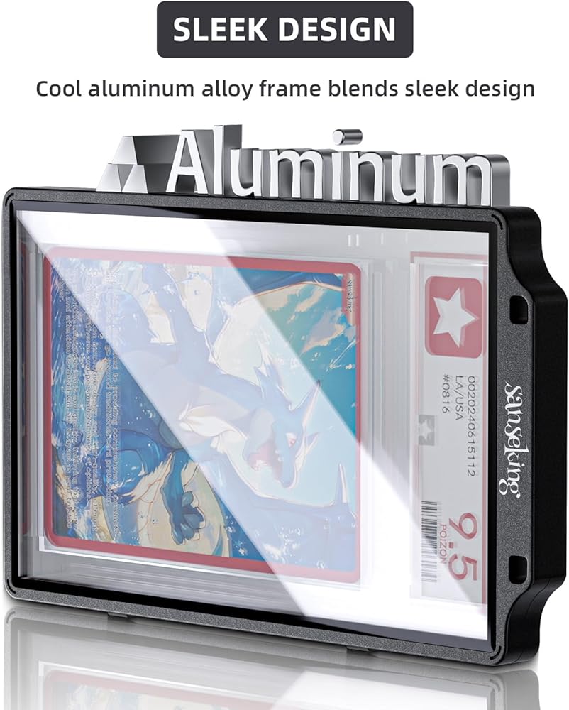 SLEEK DESIGN:The frame of the slab display case is made from lightweight, slim aluminum alloy, giving it a sleek, modern look that improves the overall experience. Sanseking offers different options, including protector cases for PSA 35PT graded cards and 130PT graded cards, with color choices like purple, pink, and black