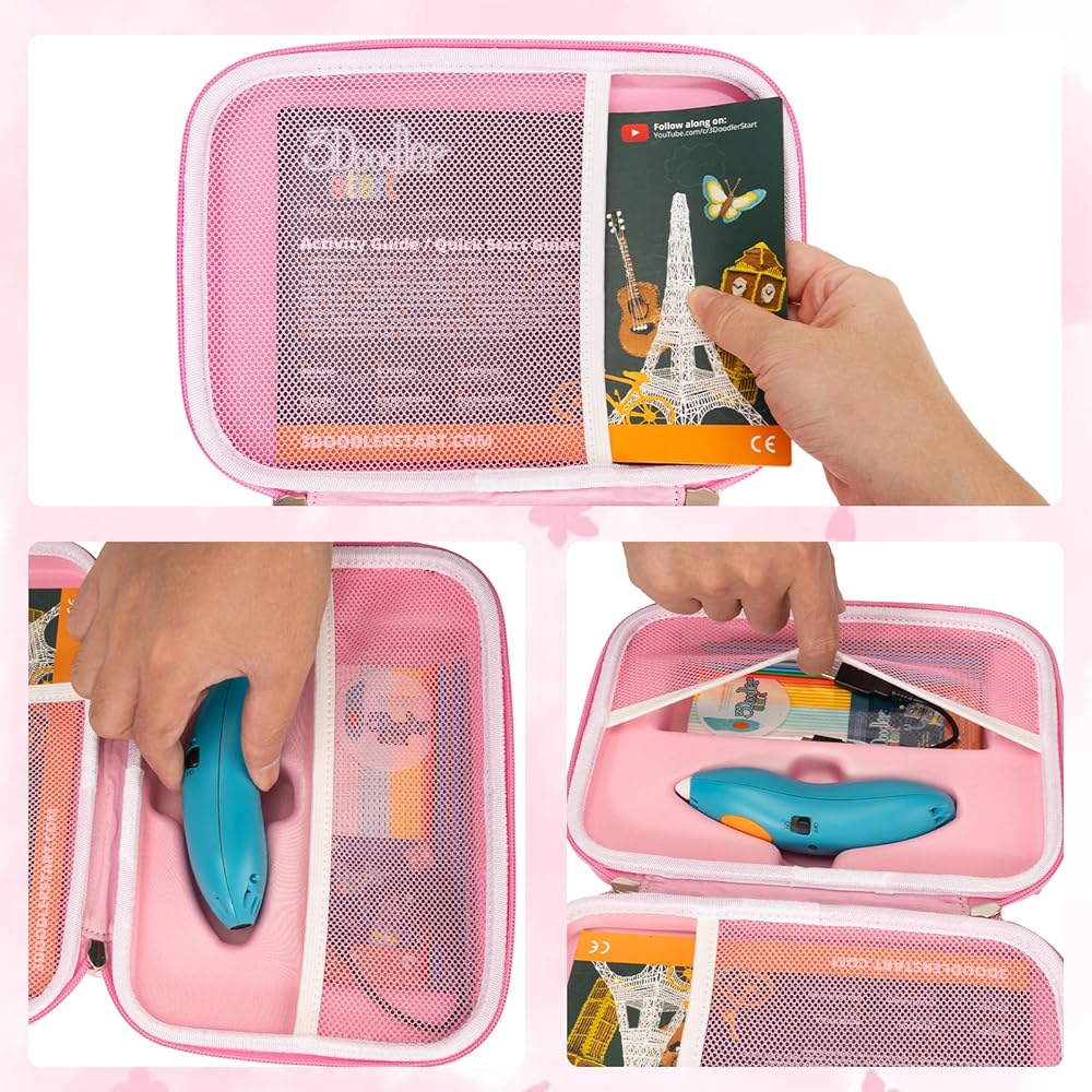 【Perfect Fit 3Doodler Start Plus Essentials Pen Set】 This sturdy carrying case is designed to hold the 3Doodler Start+ Essentials 3D pen set, start plastic filaments strands refills, doodlepad, doodlemat, USB-C cable, USB charger, activity guide, helping to keep everything organized in one place! Convenient to use, carry and store. The case color matches the 3D printing pen for 3doodler, it is simple and beautiful. (3D printing pen and art kit are not included, just case only)