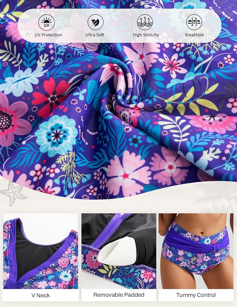 Ruffle Two Piece Design: The tummy control bikini sets for women features a chic V neck padded bikini top, ruffle sleeves and high waist bikini bottoms, offering both style and comfort for your beach or pool days