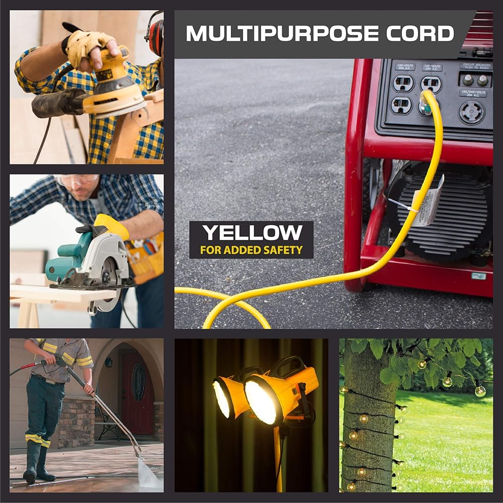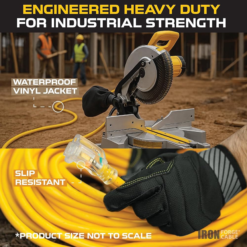 MORE VISIBILITY, SAFER WORK SITE - This heavy-duty extension cord's lighted end lets you know when the power is on. The bright yellow SJTW cord jacket reduces the risk of tripping over your cable while connected to electrical appliances.