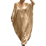 With an exquisite embroidery V-neck, and cold shoulder, this kaftan dress is not sheer, making a elegant and classy look to your outfits.