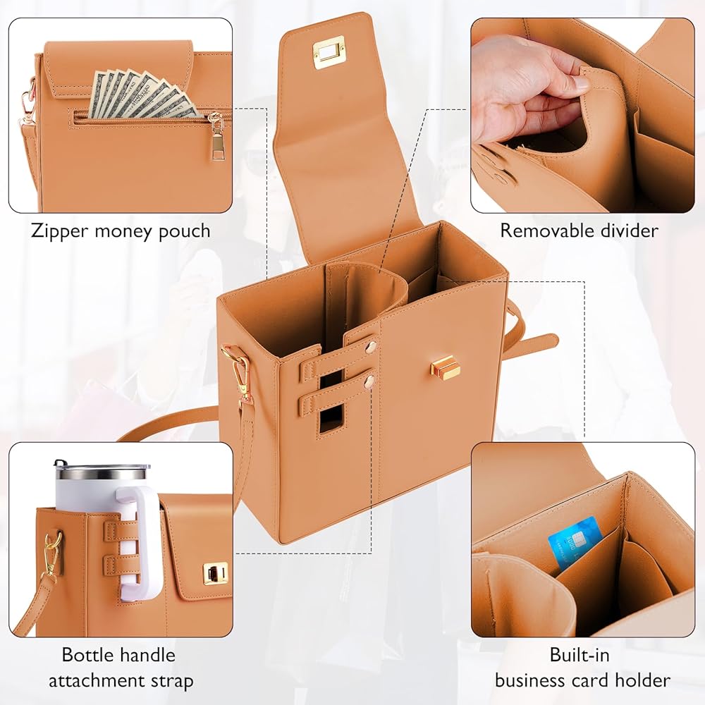 Premium Material: Crafted with faux leather exterior and suede interior, accented by gold-tone hardware and a twist lock, this portable water bottle purse is both stylish and robust. Ideal for sports and outdoor activities, it combines elegance with durability