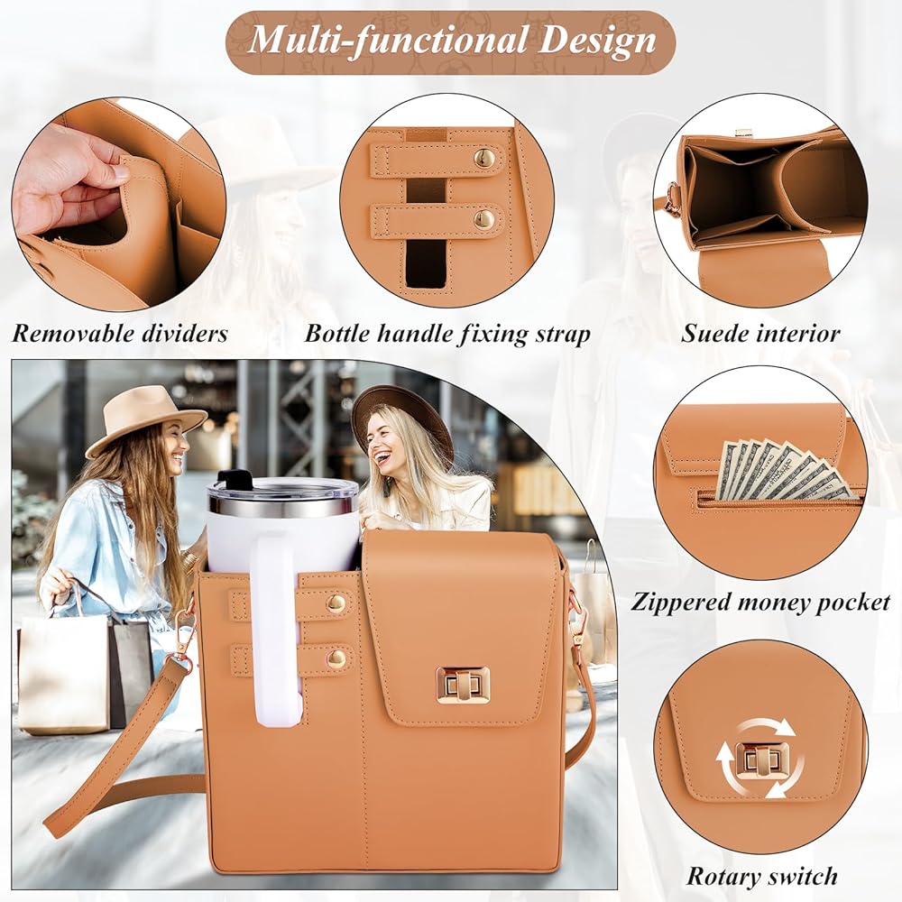 Multi-Functional Storage: Stay organized on the go with our cup bag's multi-functional storage compartment. With a coin purse, replaceable straps, and ample space for travel essentials, this bag is not just a cup holder but a compact travel companion for all your daily needs