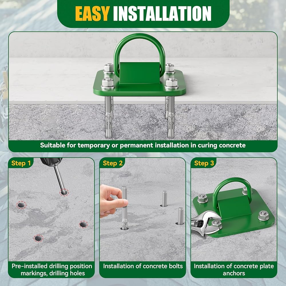 Versatility: Concrete floor anchor are suitable for temporary and permanent installations in cured concrete or steel structures, and the installation process is simple and fast