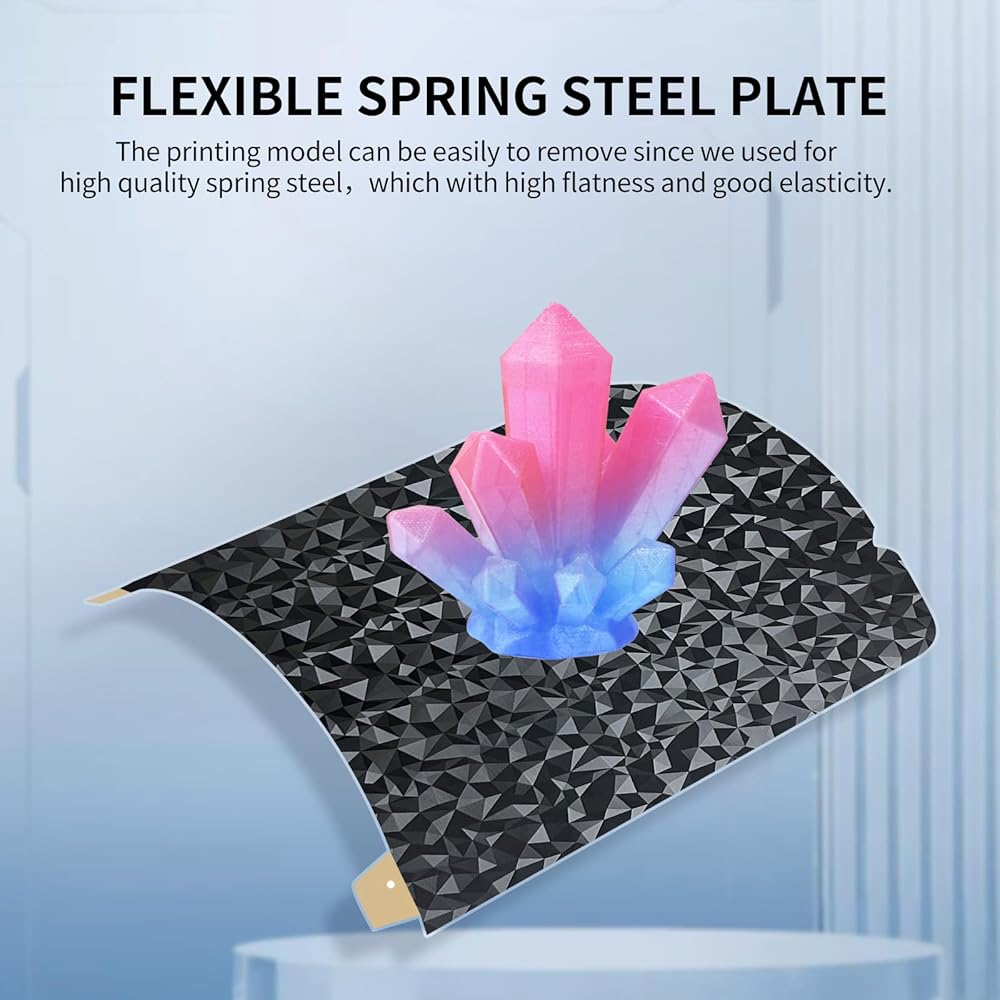 【Double Sided Printing Design】The spring steel bed plate can be printed on both sides. One side is smooth PEO surface which can print diamond pattern; other side is classic textured PEI, classics never go out of style.