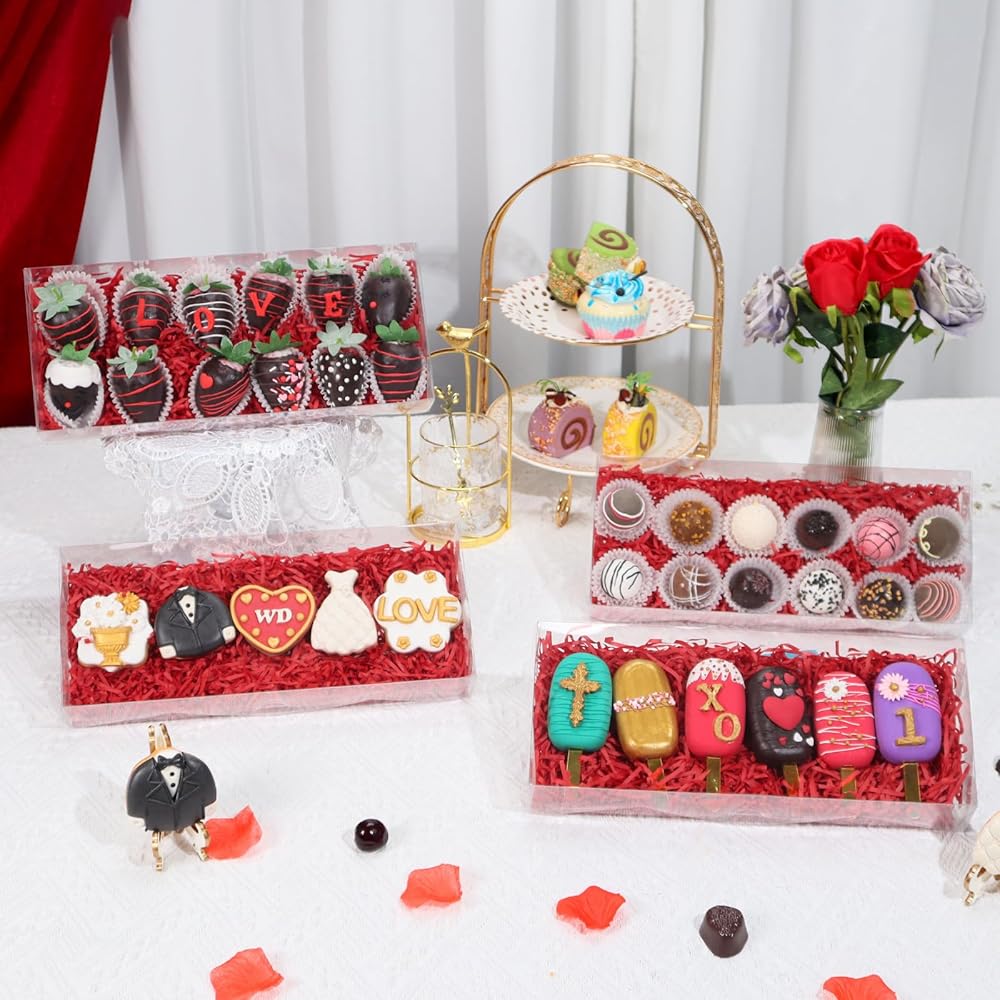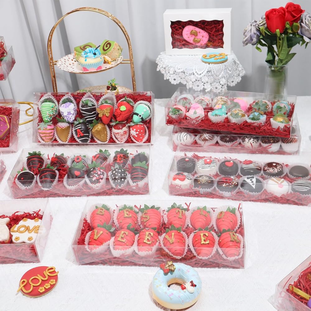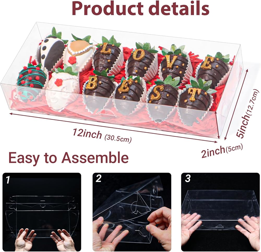 - 【Size】Length: 10nches (25.4CM) x Width: 7inches(17.8CM) x Height:2inches(5cm) box fit for 12 chocolate covered strawberries
