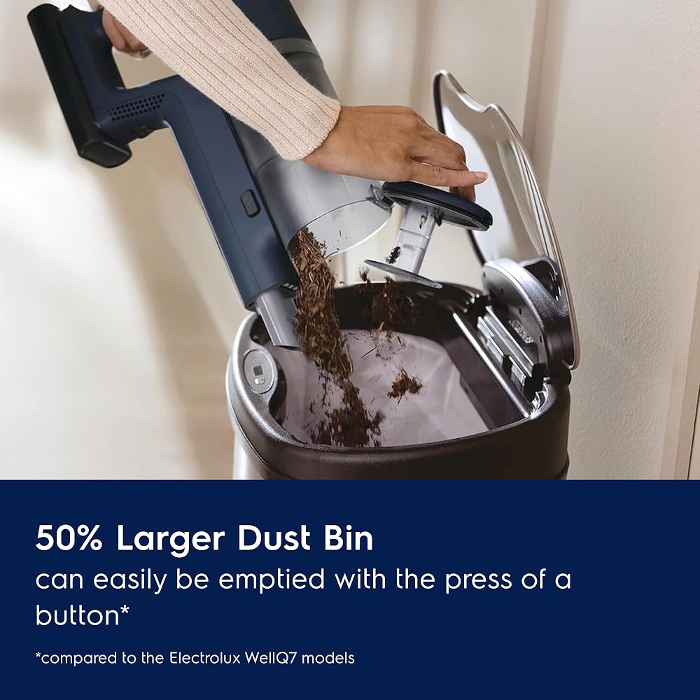 Quick dust bin emptying without contact: Easily empty the dust bin with just one touch of a button. No dust clouds and no mess. The bottom release of dust makes disposal simple and quick for a clean, fresh home with minimal effort.