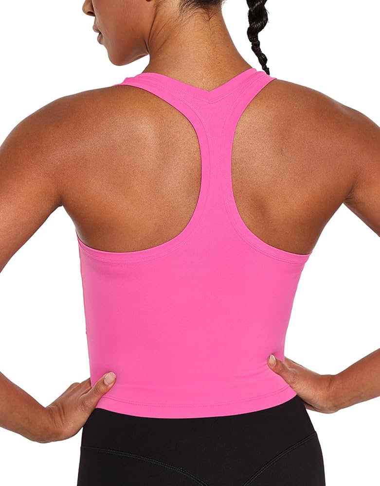 Features: Racerback, scoop neckline, sleeveless cropped tank top