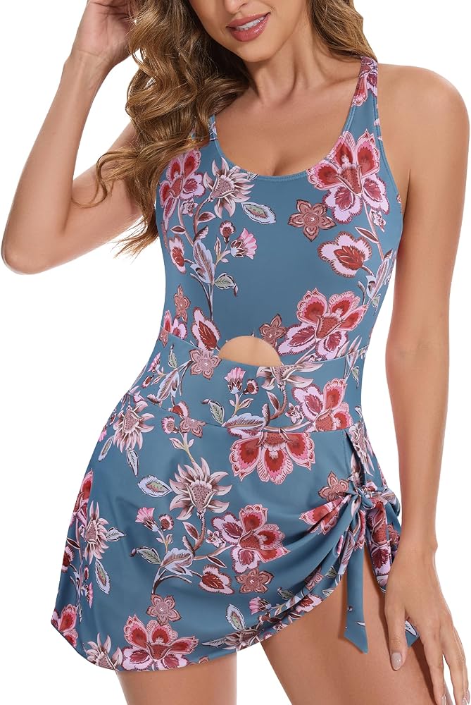 Versatile One-Piece Swimsuit:The womens swimsuits feature an adjustable skirt that can be tied or left loose, while built-in triangle shorts in this tummy control swimsuits for women provide full hip coverage, enhancing curves and ensuring maximum security