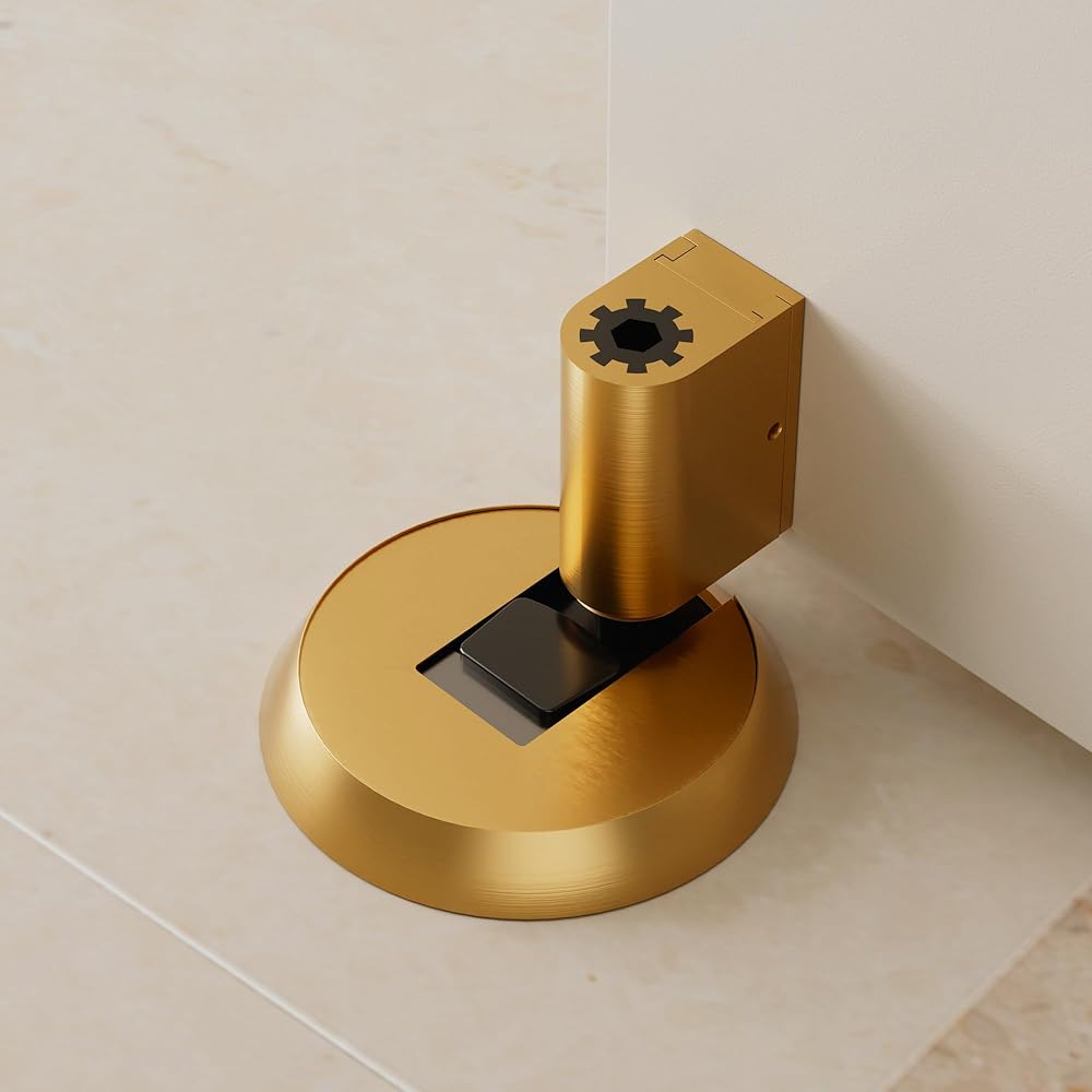 Brass Windproof Door Stoppers Heavy Duty Mechanical Floor Door Stop Height Adjustable Keep Door Open Door Catch Holder Wall Protect with Screws, Brushed Brass, 1 Pack