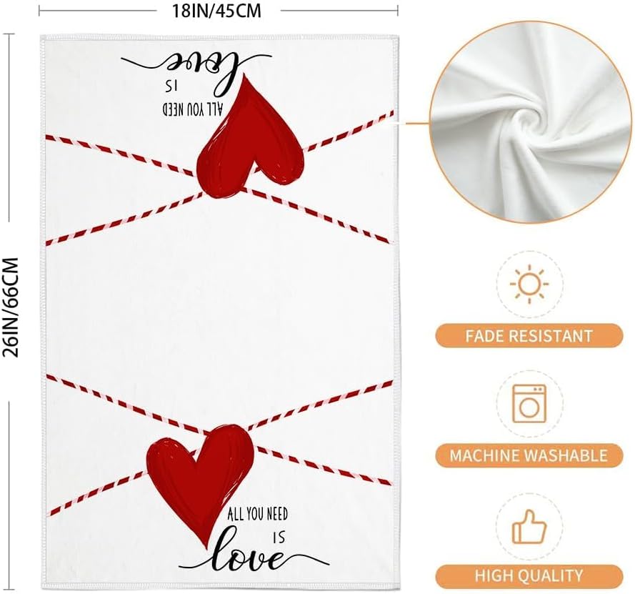 [Functional Size]: Valentine Day kitchen towel is 18 x 26 inches, which is large enough to handle most kitchen tasks. From drying dishes to wiping down countertops, our Valentine Day dish towels provide ample coverage, making them a practical and essential tool in any kitchen.