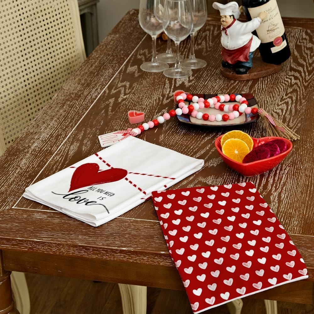 [Great Gifts]: Our Valentine-themed dish towels are perfect to complement other Valentine Day decorations in your home. They also make a thoughtful and practical gift for a housewarming or hostess occasion, showing your appreciation for their hospitality while also adding a touch of Valentine charm to their home.