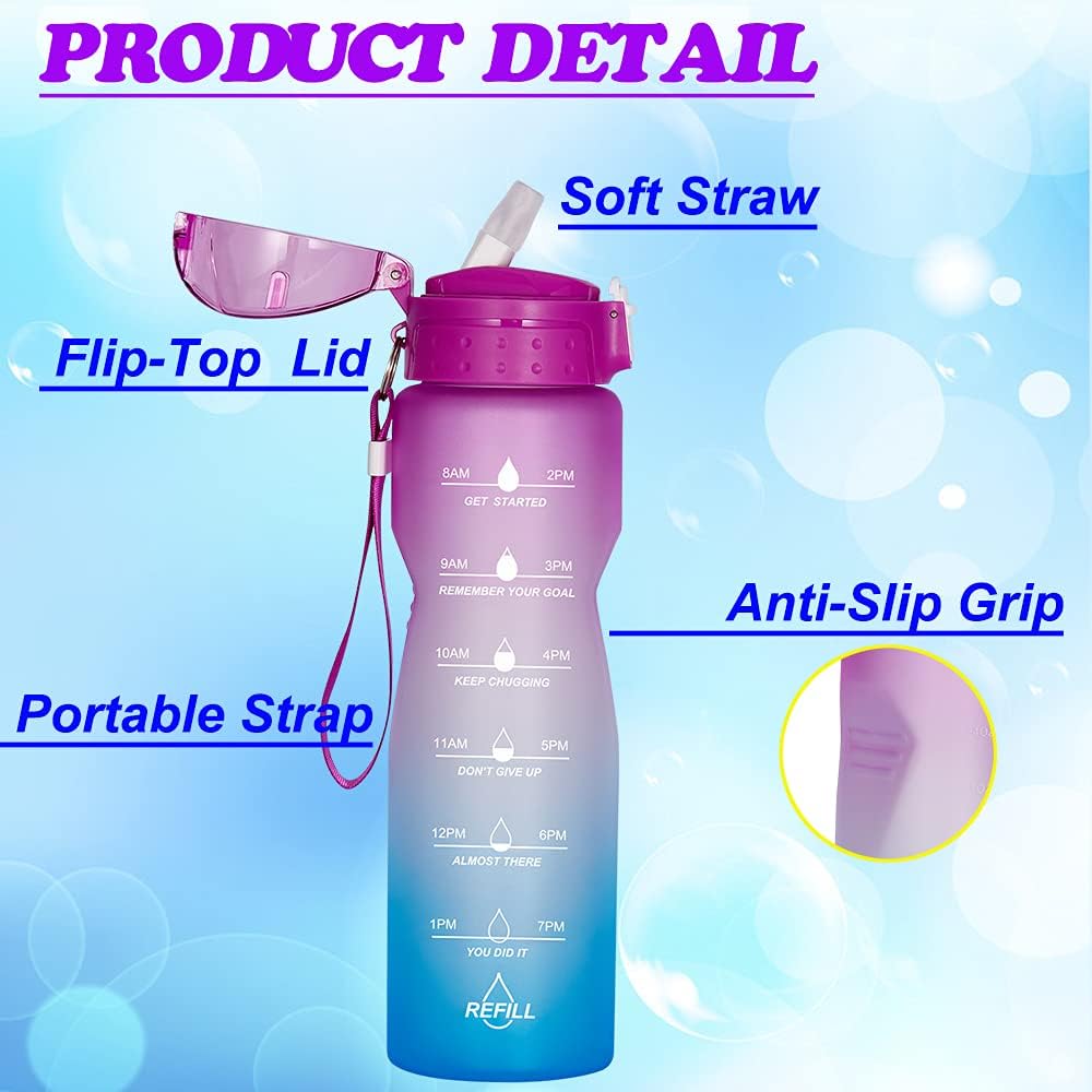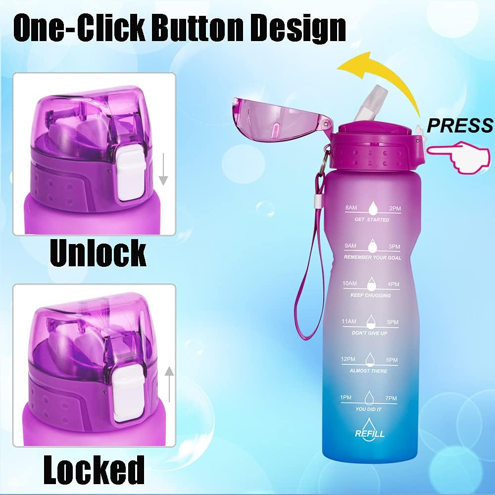 【SAFE & GOOD QUALITY BOTTLE】 Our water tracker bottle with straw lid is made of eco-friendly food grade Tritan material, this sports water bottle for women is 100% bpa free, non-toxic, non-chemical smell, reusable, durable. Equipped with a spring- loaded dust cap and a silicone O-ring inside makes this water bottle 100% leak proof and dust proof. So you can drink water with our bottle with confidence and can rest assured it's absolutely healthy!