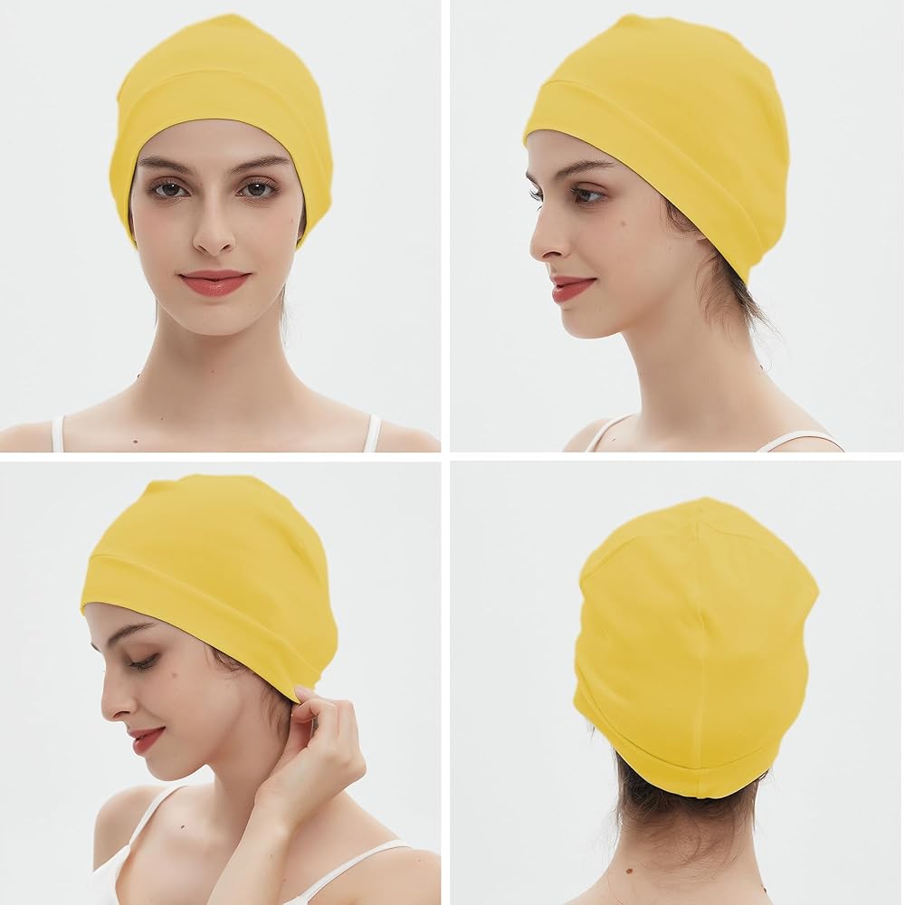 Good Stretch:Lightweight cotton beanie cap for women and men, suitable for head circumference 21.2-23.2 inches;Pure cotton material;High stretchy,good wrinkle resistance;It's smooth, ultra-thin,and lightweight,making it a sleeping cap or cancer headwear