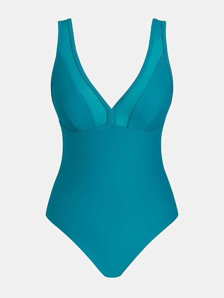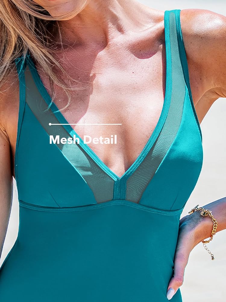 Design: The Trendy One Piece Swimsuit Design with Mesh V Neck Flattering on The Beach ; This Classical Bathing Suit Features Wide Adjustable Straps Can Give You Comfortable Feeling
