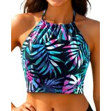 This high-neck, full-coverage bikini top prevents exposure and stays secure in the water. The modest crop swim top enhances your curves, making them more attractive.