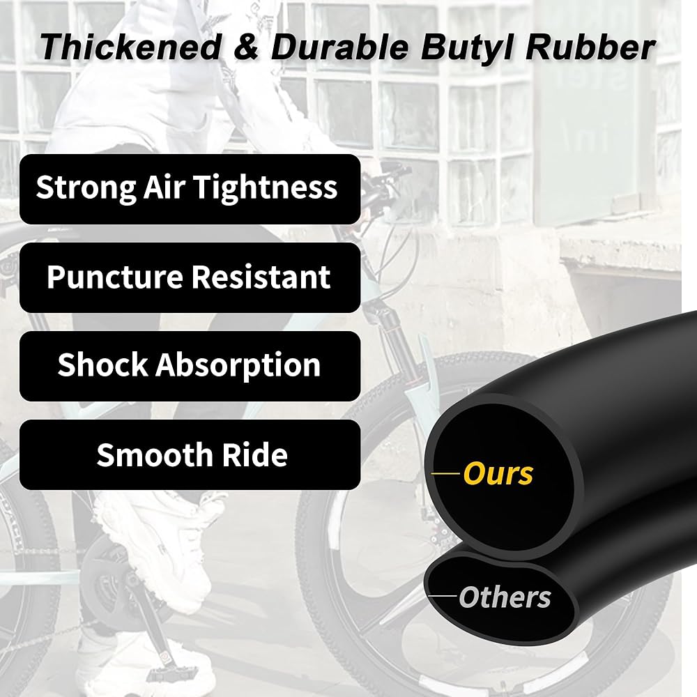 Better Performance:Butyl Rubber Better Shock Absorption Butyl adds to more stretch, shock absorption, impact and puncture resistance for a smoother ride.Our butyl rubber inner tubes are softer than ordinary rubber inner tubes of competitors. They offer better shock and vibration absorption performance for a much smoother ride