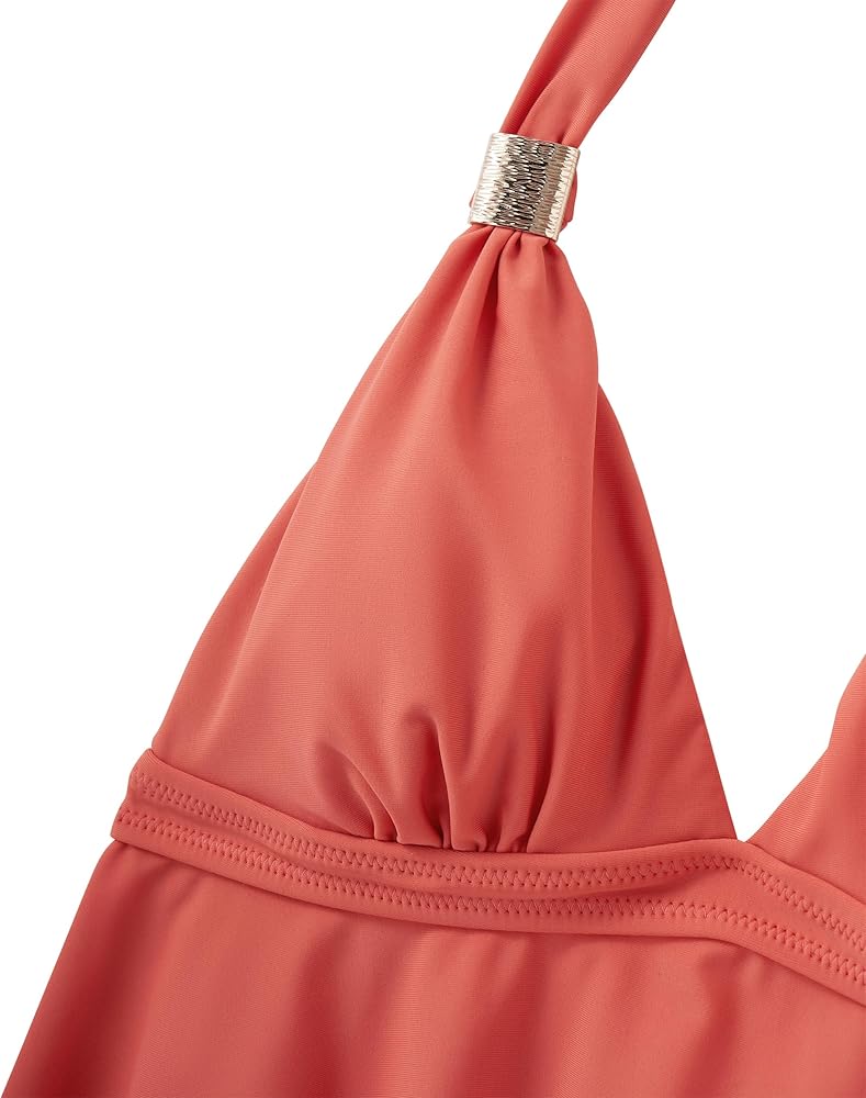 Halter Tankini Bathing Suits: Sexy v neck tankini tops for women,adjustable halter neck strap with gold metal sliders,open back detail adds more charm to this tankinis swimwear.