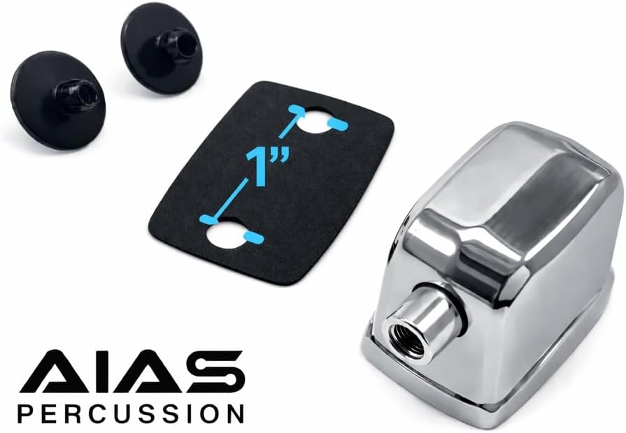 AIAS Percussion Single End Bass Drum Lugs - Chrome. 1 inch spacing between screw holes. Includes rubber gaskets and mounting screws